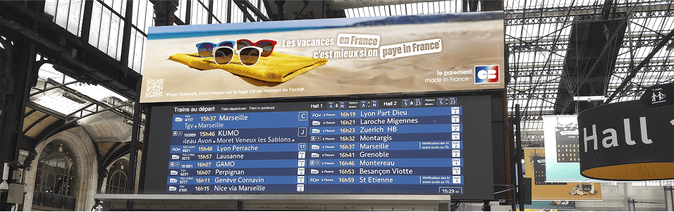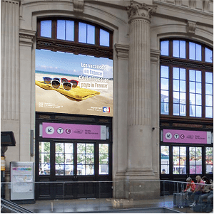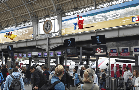 Un affichage événementiel grand format dans les principales gares françaises à Paris, Marseille, Bordeaux et Lille.