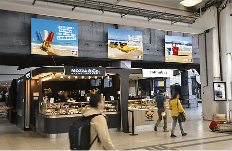 La campagne, composée de 3 visuels, s’affiche au cœur des grandes gares françaises et dans les centres commerciaux côtiers.