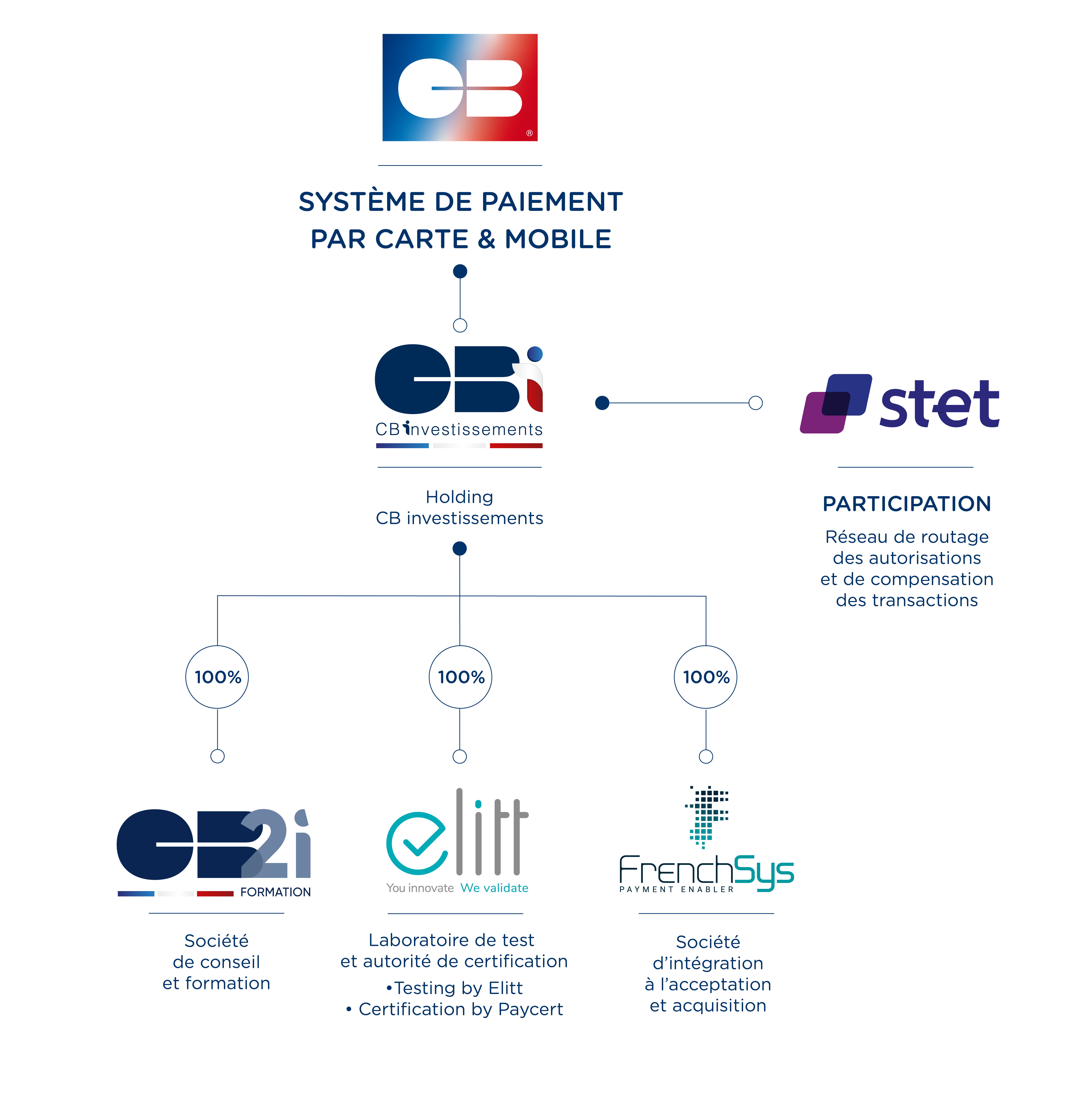 Via la holding CB Investissements, CB détient 3 filiales et participe au capital du réseau de routage et de compensation STET.