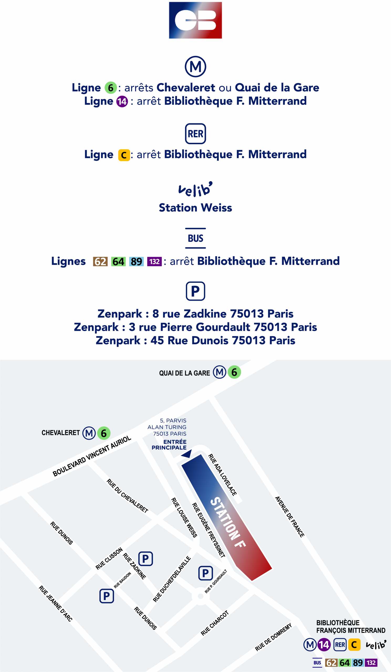 Cette Journée du Commerce CB se tiendra à Station F. Ancienne halle inaugurée en 2017, Station F est aujourd'hui le plus grand incubateur de startups au monde. Avec plus de 34 000m2, Station F accueille sur le campus plus de 1 000 startups. La Journée du Commerce CB du 28 juin s'articulera principalement autour de 2 espaces phares : l'auditorium pour des séances plénières et l'atrium pour l'exposition consacrée aux pépites repérées par le LAB by CB.